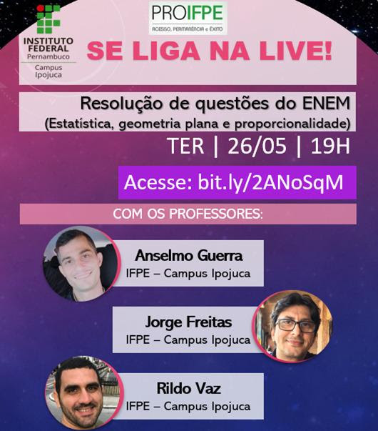 No canal parceiro ao nosso: @proifpeipojuca , eles farão uma live hoje sobre questões do Enem!! Aproveitem.